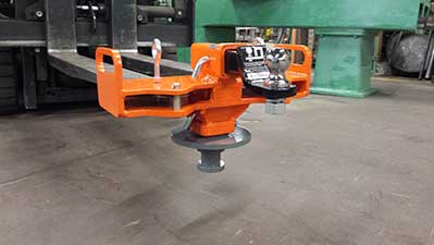 This Rhino was designed to allow an 8 ½” gap between the forks to accommodate a fork limitation on the customer’s forklift.