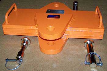 Designed to be utilized along with a forklift to pick up the back end of a semi to be wheelbarrowed into a repair bay. Top receiver insert offers extra versatility.