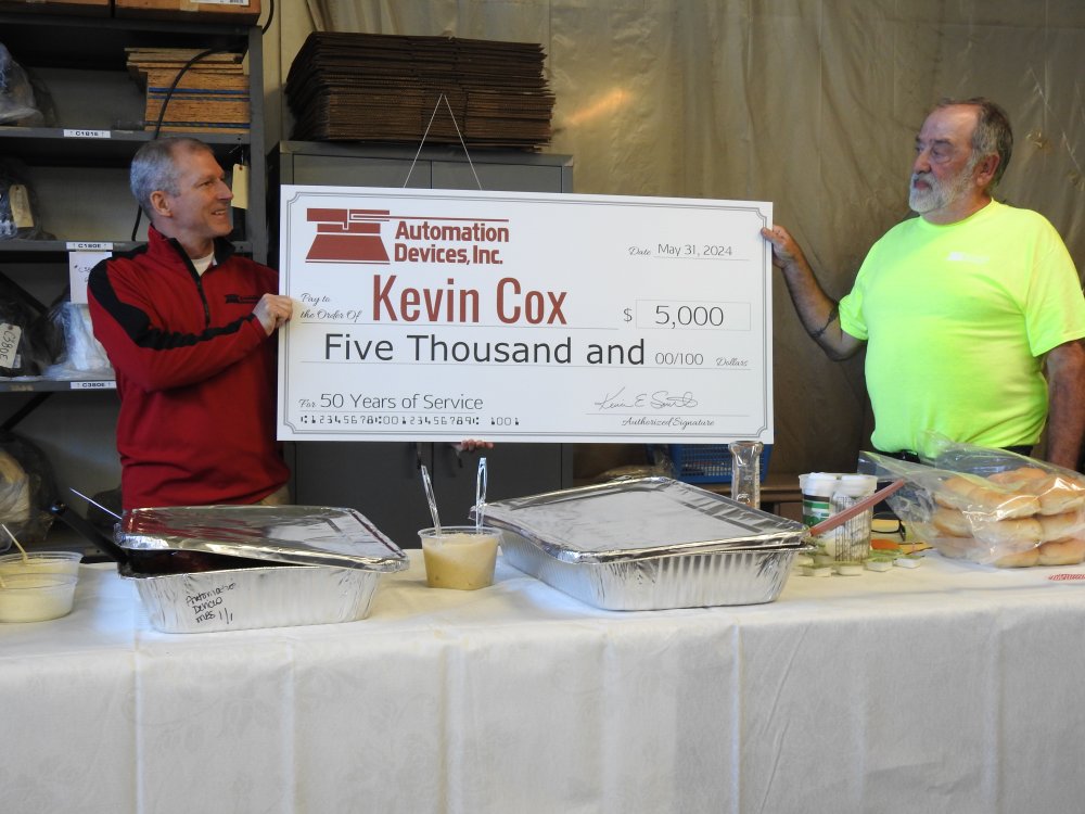 ADI technician Kevin Cox achieved an incredible milestone—50 years with Automation Devices!