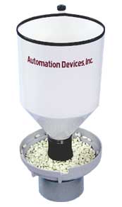 The Overhead Hopper is ADI’s most independent hopper. It operates withou the need for a direct source of vibration and electrical power. This independence combined with an extremely flexible mounting system yields a gravity hopper suited to perform exceptionally well in a wide variety of vibratory feeding applications.