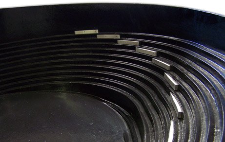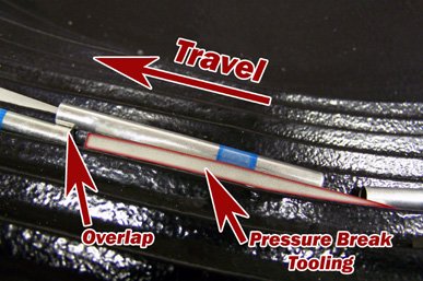 Pressure break tooling prevents parts from jamming into each other when the feed rate of the bowl exceeds the rate at which the parts are used. Overlap and disoriented parts may jam tooling. As above, this is often a problem in multi-track bowls.